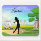 Golf Mousepad with Golfer Swinging and pink golf cart and golf bag.