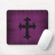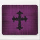 Alfombrilla de ratón gótica púrpura con cruz gótica negra. © Dark Heart Desires.