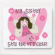 Gran Hermana Aún la Princesa Camisetas, tazas, bolsas, tarjetas, botones, pegatinas, cadenas de llaves, almohadas y otras ropas y regalos de la hermana mayor con una adorable princesa de hadas sobre un gran fondo de corazón rosado y pequeñas flores rosadas con un texto que dice "¡Gran Hermana aún la Princesa!".