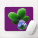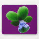 Este mousepad muestra una fotografía de una flor Pansy salvaje. La foto ha sido pintada artificialmente, lo que ha resultado en una maraña con tonos claros y oscuros de verde y un centro azul pálido. El fondo es morado para mostrar al máximo la belleza de esta flor.