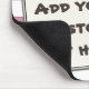 ¿Qué tienes en mente? ¡Añade tu declaración en esta almohadilla de ratón personalizado! Foto digitalmente alterada de un joven gritando su texto en una etiqueta rectangular blanca. El fondo es de rayas blancas en cualquier color - se puede colorear el espacio entre esas rayas ajustando el color de fondo básico de los productos! Todo el texto se puede personalizar fácilmente y reposicionar. También se pueden ajustar el tipo de letra, el tamaño y el color del texto.