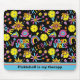 Con la almohadilla del ratón de texto, Groovy, estilo retro de los años 90 patrón de bola de pickleball con bolas de picnic amarillas y fondo negro.