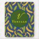 Alfombrilla De Ratón Guión Monograma de la hoja azul del plátano tropic