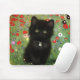 Almohadilla del ratón con un gatito Gustav Klimt! Este gatito negro lleva un collar de plata y se sienta en un campo de flores rojas, azules, blancas y amarillas. ¡Un regalo maravilloso para los amantes del gato y del arte austriaco!