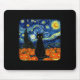 Alfombrilla De Ratón Halloween Black Cat Costume Van Gogh Starry Night