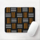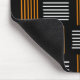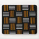 Esta almohadilla de ratón tiene un diseño moderno de mediados de siglo que parece un tejido con líneas naranjas y blancas en un campo de negro.
