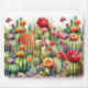 Esta es una bonita almohadilla de ratón con una variedad de cactus floridos sobre un fondo blanco en un estilo acuarela. Esta es la almohadilla perfecta para cualquier persona que ame cactus, suculentos o plantas en general.