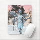 Representación digital en 3D de un hermoso hada de hielo en un fondo de bosque invernal