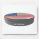 La bandera estadounidense cubre la superficie de un disco de hockey.
