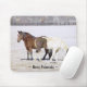 Fotografía de dos hermosos caballos en una mañana helada con las palabras "Mejores Amigos", mostrada en un Mousepad de calidad.