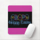El diseño se compone de huevos decorados con neones de color rosa, amarillo, violeta y azul. Happy Easter está impreso en la parte inferior de este diseño. Se aplica un fondo negro a la parte posterior. Este diseño se presenta en diversos planos y en dos estilos de almohadillas de ratón. Puede personalizar este elemento a su gusto.