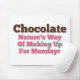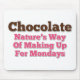 Chocolate, la forma de la naturaleza de compensar los lunes. Un dulce de chocolate lindo, divertido y humorístico que dice un diseño de comillas en letras de texto rosa y marrón.