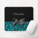 Un lindo y moderno ratón de estampado de cebra con modernas rayas de cebra verde azuladas y negras y adornado con una cinta negra ondulada impresa. Personalice añadiendo su nombre a este diseño de moda de mujeres negras y turquesas. Perfecto para la elegante moda de cualquier chica adolescente.