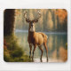 Doce puntos en rack sobre un ciervo fabuloso. Comprobando la zona de los bosques en otoño mientras se encuentra a orillas de un pequeño lago.