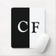 Alfombrilla De Ratón Iniciales personalizados de mitades en blanco y ne