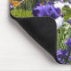 en esta almohadilla de ratón abundan los iris morados y el cielo azul
