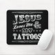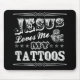 Mousepad con el "Jesús popular me ama y mis tatuajes" diseñan