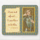 San Juana de Arco, la "doncella de Orleans", es la santa patrona de las mujeres que sirven en el ejército. En esta descripción, se enfatiza su carrera militar. San Juan está vestido con una armadura de placas contemporánea del siglo XV y carga una espada en un scabbard ornamentado con fleur di lis. La flor di lis, un lirio estilizado, es un motivo rico en significación heráldica, política y religiosa. + Fiesta: 30 de mayo + Crédito de la imagen (JM 28): Imagen antigua de San Juana de Arco, publicada originalmente en cromolitografía por Josef Müller Art Publisher, Munich y Nueva York, primer cuarto del siglo XX, de la colección privada de ephemera religiosa del diseñador. Esta es sólo una de las más de sesenta imágenes en un estilo muy popular de impresiones devocionales emitidas en varios tamaños y formatos por Müller a principios del siglo pasado.