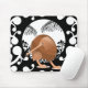 Un ilustracion vectorial de un ave Kiwi. El pájaro está enmarcado por una luna llena pues Kiwi es nocturno. El fondo es maorí blanco y negro, con un diseño tradicional korú. Ilustracion de aves Aotearoa de Nueva Zelanda.