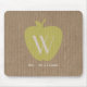 Un mousepad para los profesores que ofrecían un ilustracion de una manzana sobre una arpillera inspiró el fondo. Personalice con su nombre e inicial.