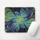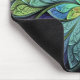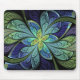 Las falsas hojas del vitral del verde y de la turquesa enmarcan una flor central en sombras de azul y de púrpura.