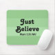 Esta linda almohadilla de ratón presenta rayas verdes junto con un versículo de la Biblia del Evangelio de Marcos.