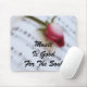 Un solo brote del rosa rojo pone a través de una hoja de la música en una fotografía original suave, soñadora, romántica del color. Este mousepad hace un gran regalo para el amante de la música. Se muestra aquí la "música es buena para texto del alma". Cambie fácilmente el texto y/o añada un nombre para personalizar. ¡Este mousepad inspirador hace un gran regalo para el amante de la música!