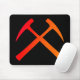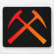 El mousepad negro con el rojo-naranja cruzó símbolo de los martillos de la roca.