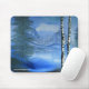 Mousepad con una imagen del tradicional "Lago Tranquil" de Dawn K. Williams, un paisaje azul y verde con pinos y pinos, colinas y un lago reflexivo.