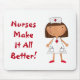 Una enfermera linda del dibujo animado sonríe hacia fuera en usted, con el texto en rojo en el lado, las enfermeras lo hace todo mejor. ¡Perfeccione para la enfermera en su vida!