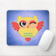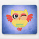 Un pequeño búho adorable con un fondo azul guiñando el ojo. Imagen vectorial de corte.