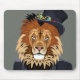 Este retrato de las características del diseño de un león en el traje de negocios y el gorra de un hombre.