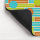 Esta almohadilla de ratón tiene un diseño moderno de mediados de siglo de repetición de rectángulos en verde lima, marrón canela y turquesa con círculos sobre la parte superior.