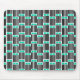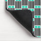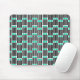 Esta almohadilla de ratón tiene un diseño moderno de mediados de siglo compuesto por cinco líneas negras y dos rectángulos turquesa repetidos a lo largo del diseño.