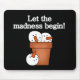 ¡Uy! ¡Uno de los adorables hombres de nieve en el maceta de flores de arcilla parece haber perdido la cabeza! Si te sientes un poco afligido durante las vacaciones con tanto por hacer, te identificarás con este humorístico diseño de muñecos de nieve vacacional en camisetas de vacaciones, sudaderas, bolsas de tote, tazas y más que dice "¡Que empiece la locura!". También puede agregar un nombre si desea utilizar la herramienta de personalización.