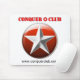 Mousepad con el logotipo del cc, el símbolo del conquistador y la dirección de la tela