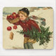 Esto es una postal del vintage de un muchacho que recolecta decoraciones del navidad.