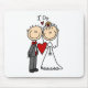 Una figura novia y novio del palillo en un smoking y un vestido de boda con el texto que me lee "hace" en la figura camisetas de los pares del boda, tazas, tarjetas, pegatinas, recuerdos, llaveros, mousepads, placemats, ornamentos, y otros artículos nupciales del palillo de la ropa y del regalo.