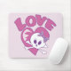 Calavera y huesos cruzados en un corazón rosado con texto de AMOR. Este es un cráneo de niñas adorable para mujeres y niños.