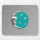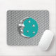 Almohadilla de ratón en una luna clásica Art Deco y diseño de estrellas en plata cepillada y esmalte de color turquesa / pavo real, sobre un fondo falso metálico plateado