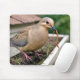 Una paloma de duelo con marcas distintivas sostiene un gusano en su pico mientras está encaramado en el borde de un alcantarillado de tierra