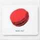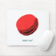 llamativa imagen del macarón de fresa con el texto "mais oui!"