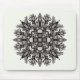 Mousepad trippy con un ilustracion digital de tinta digital fresco psíquico mandala en blanco y negro con hongos y plantas.
