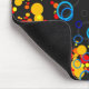 La diversión y el diseño retro enrrollado del fondo compusieron de formas azules del anillo y de puntos del naranja, rojos y amarillos. Imagen disponible en los diversos regalos y productos.
