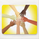 Manos humanas de diversos fondos raciales que alcanzan hacia fuera y que se tocan.