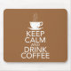 "Mantenga tranquilo y el café de la bebida" es nuestro único, el diseño de la diversión basado en la parodia del famoso "guarda calma y continúa" lema británico a partir de los años 40.