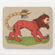 Un Manticore de cola de escorpión con un pelto de color cinabrio se asoma ferozmente en este ilustracion original basado principalmente en la descripción de Ctesias de esta bestia híbrida que come el hombre.