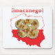 Hermoso Mapa de Polonia con la bandera roja y blanca y un montón de Pierogi en el centro y Smacznego! encima del mapa. Un gran regalo para cualquiera con raíces polacas.
