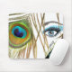 Diseño artístico de maquillaje con plumas de pavo real, acuarela y dibujo a lápiz del ojo del chica y una paleta de sombra de ojos sobre fondo blanco. Este elegante mousepad es perfecto para chicas de moda, esteticistas, cosmetólogos, salones de belleza para el cabello y maquillaje y otras profesiones similares. Si necesitas ayuda con este diseño, no dudes en contactarme.