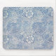 Las flores azules y blancas de la maravilla están en un diseño de la vid en esta impresión. Las hojas que rodean las flores son también azul y blanco y son muy plumosas en su diseño. El fondo azul se compone de flores y de hojas minúsculas. Esta impresión era más probable una impresión del papel pintado o impresión de la materia textil.
